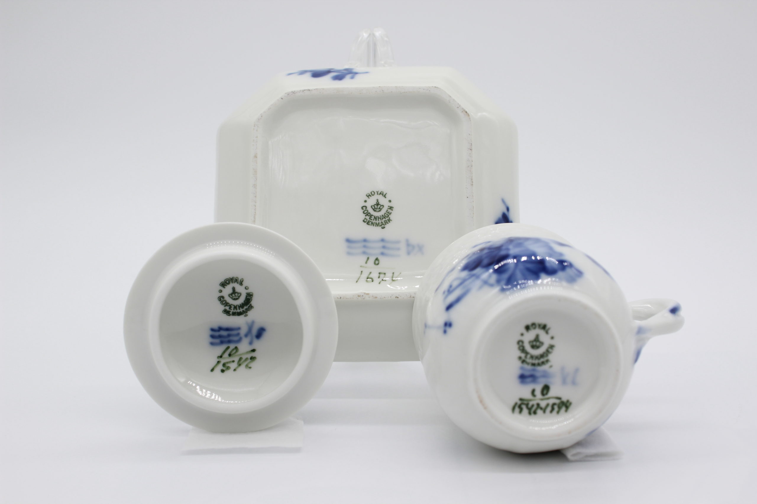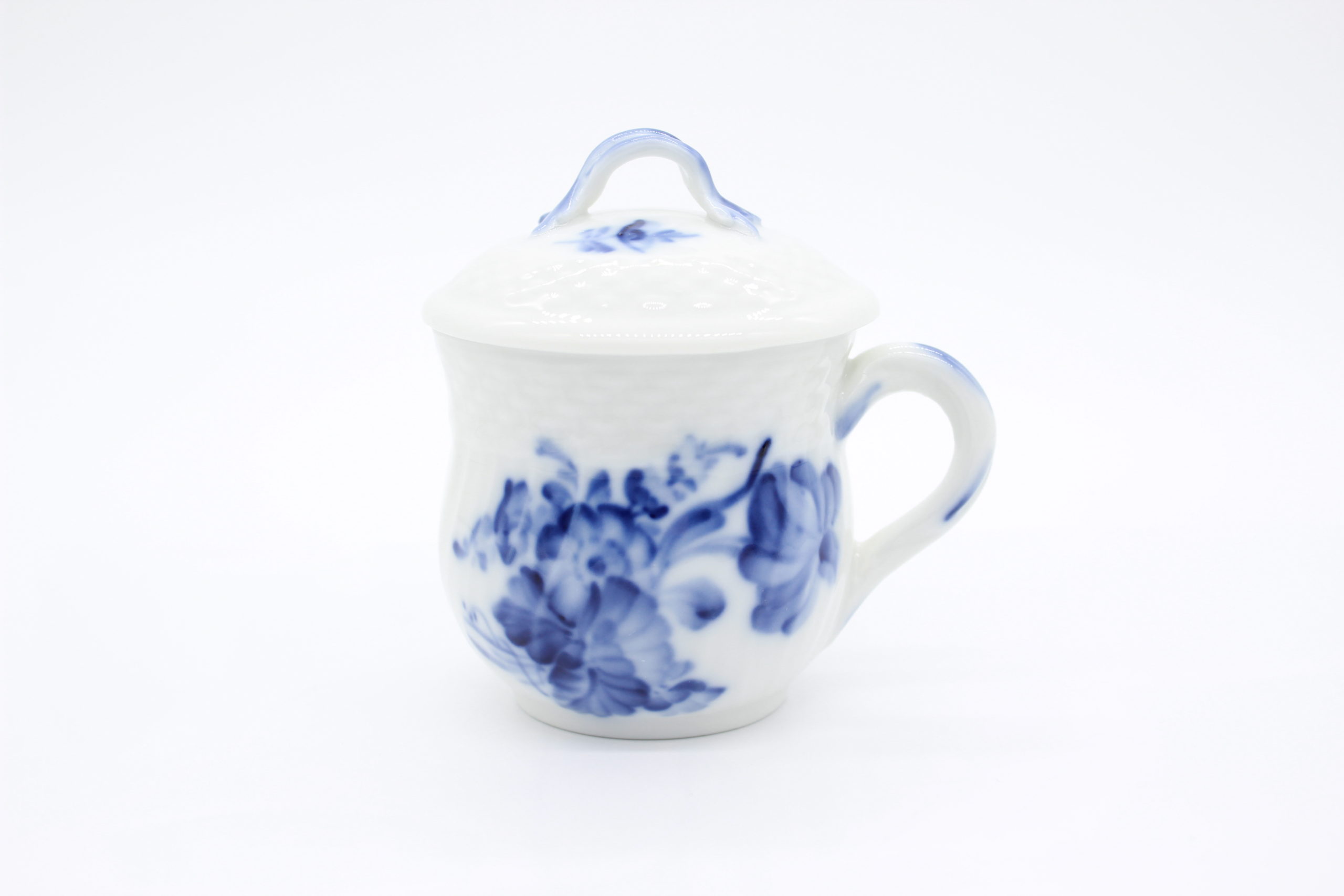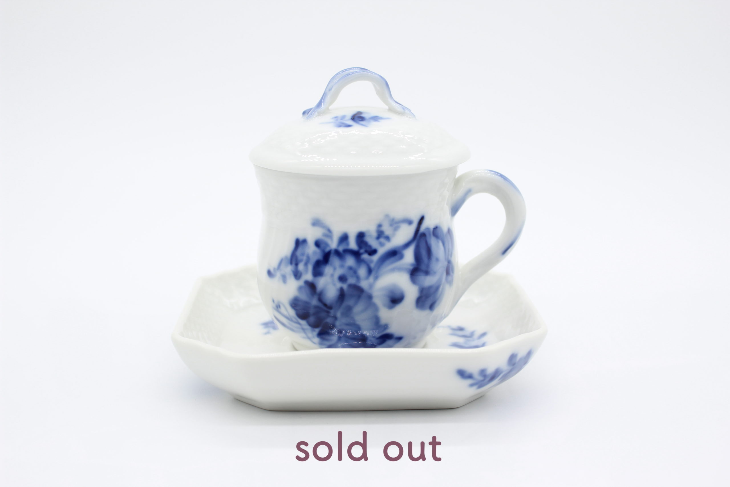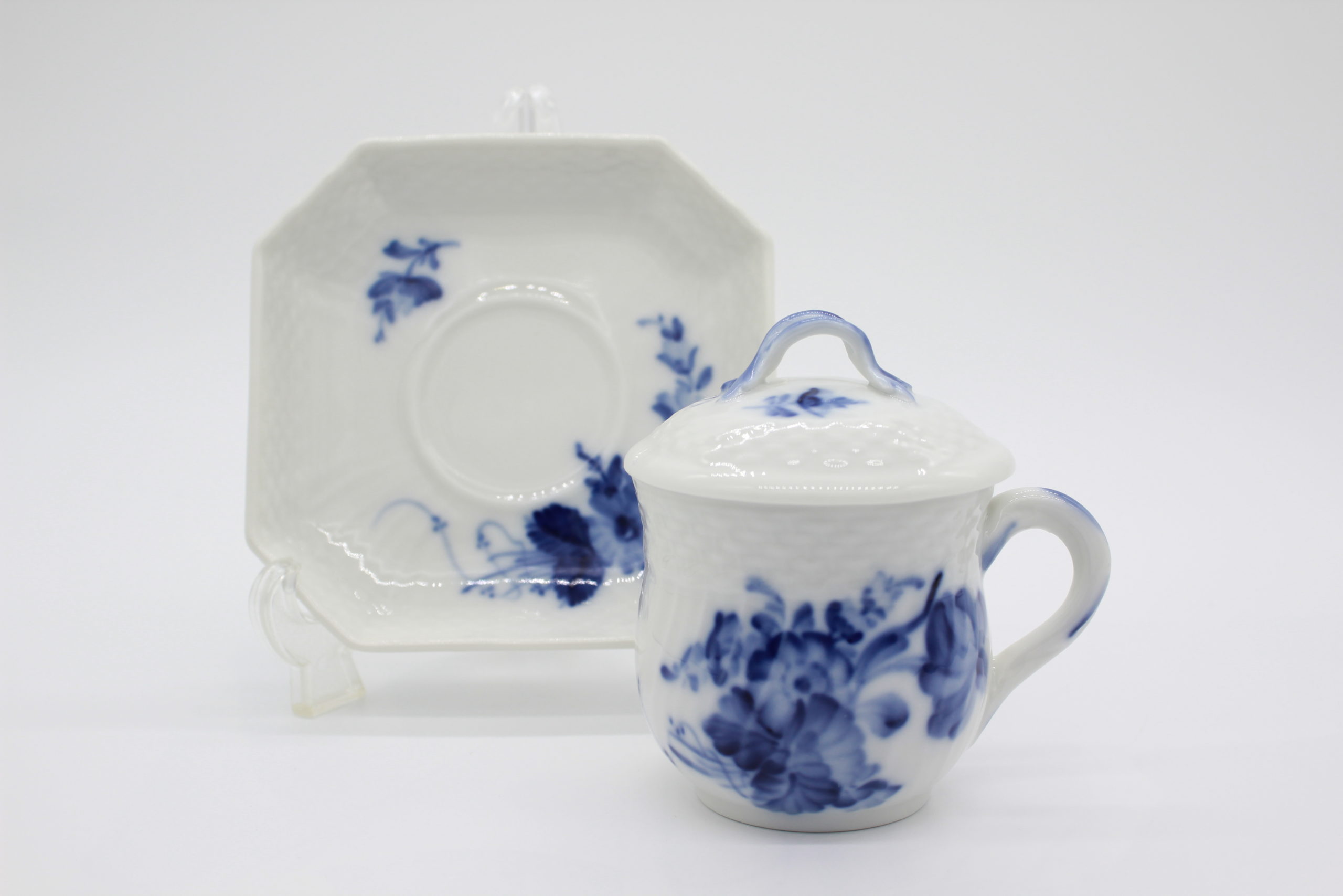 コペンハーゲンのアンティークショップで購入いたしましたロイヤルコペンハーゲン ブルーフラワーの蓋付きクリームカップ&ソーサーです。